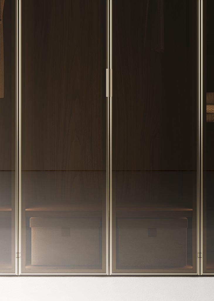 L’anta Pure combina un profilo in alluminio di alta qualità con materiali ricercati, offrendo un design moderno e raffinato.